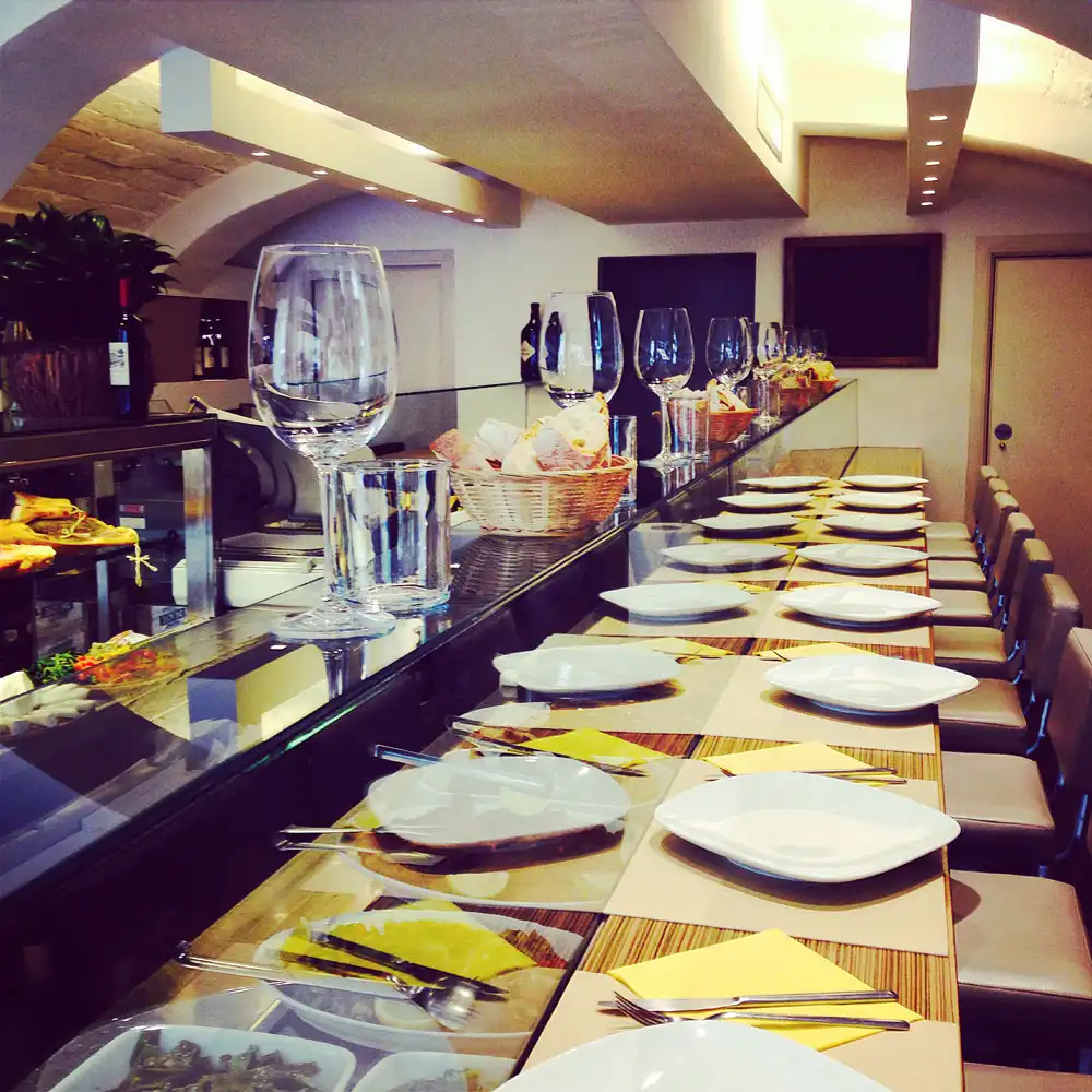 Thực đơn đồ uống tại đây được thay đổi thường xuyên, các loại rượu vô cùng phong phú, có các loại rượu đến từ nhiều nhà sản xuất nổi tiếng cũng như các loại rượu địa phương trên khắp nước Ý. Thực đơn đồ ăn tại đây có giá khoảng 200.000vnd, các món thực khách có thể thưởng thức bao gồm phi lê cá hồi hun khói, giá €8.50 (khoảng 200.000vnd), thịt và pho mát thượng hạng giá từ 8€ (khoảng 196.000vnd), bánh crostoni (bánh mì sandwich nướng giòn ăn kèm với súp) có giá €7.5.