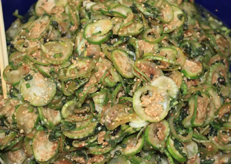 Hơn 40 loại lá khác nhau với nhiều công dụng bồi bổ sức khỏe như lá lộc vừng, sâm đất, hồng ngọc, mơ, cải cay, ổi, đinh lăng, sung, lá lốt, trâm, mã đề, diếp cá, chó đẻ răng cưa, quế, húng, thuyền đất… là nguyên liệu chính của món ăn độc đáo này.