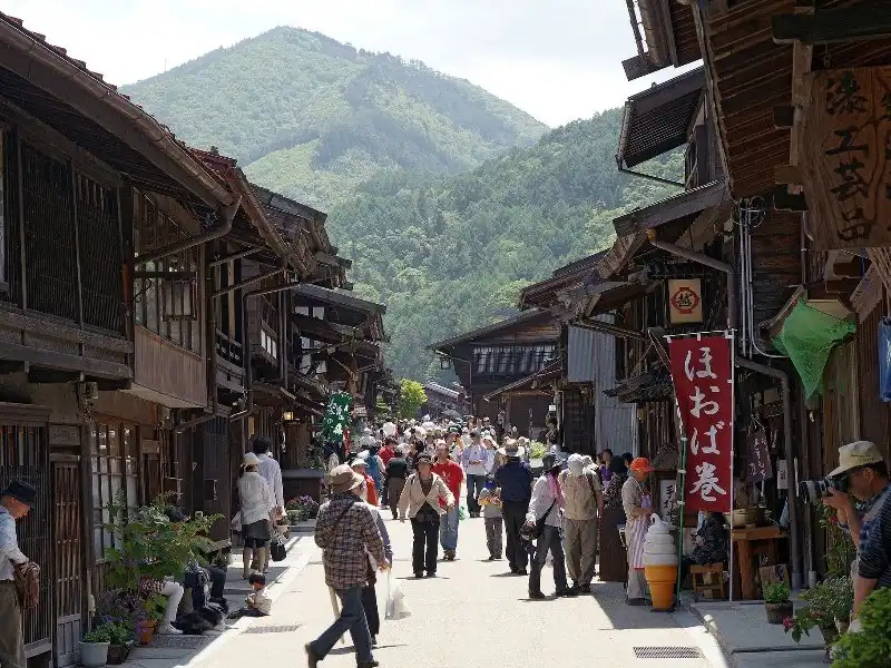 Đây là một thị trấn nhỏ yên tĩnh nằm ở quận Nagano, nằm phá Tây của thành phố Tokyo. Đây là nơi lý tưởng nếu bạn muốn tìm sự trải nghiệm về một thành phố cổ từ nhiều thế kỷ trước. Được biết, con đường Kiso nằm trong thị trấn này từng là một tuyến đường thương mại lớn trải dài giữa Kyoto và Edo (Tokyo) của xưa kia. Đặc biệt các căn nhà gỗ cổ điển ở đây được bảo tồn cực kỳ tốt. Nơi đây thật sự là mang một phong cảnh hùng vĩ, bình yên của thị trấn nằm trong thung lũng Kiso.