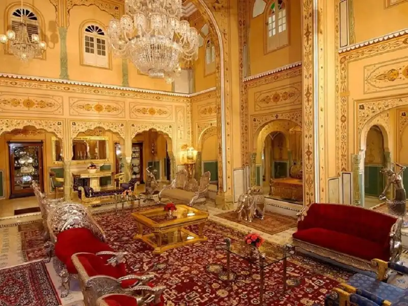 Khu phòng Shahi Mahal có đồ đạc khảm ngà voi và dát vàng, rạp chiếu phim riêng, thư viện và một phòng ăn. Du khách sẽ có một đội đầu bếp và quản gia riêng. Phòng nghỉ này có giá 40.000 USD một đêm (gần 900 triệu đồng).