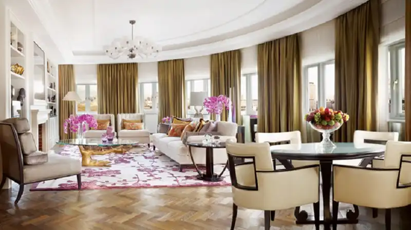 Phòng nghỉ này có trần dạng thánh đường, cửa sổ lớn, với không gian rộng rãi và xa hoa. Phòng thay đồ được trang trí bằng da dê. Du khách sẽ có quản gia riêng phục vụ 24/7, cùng huấn luyện viên và dịch vụ đi lại bằng xe Rolls-Royce.