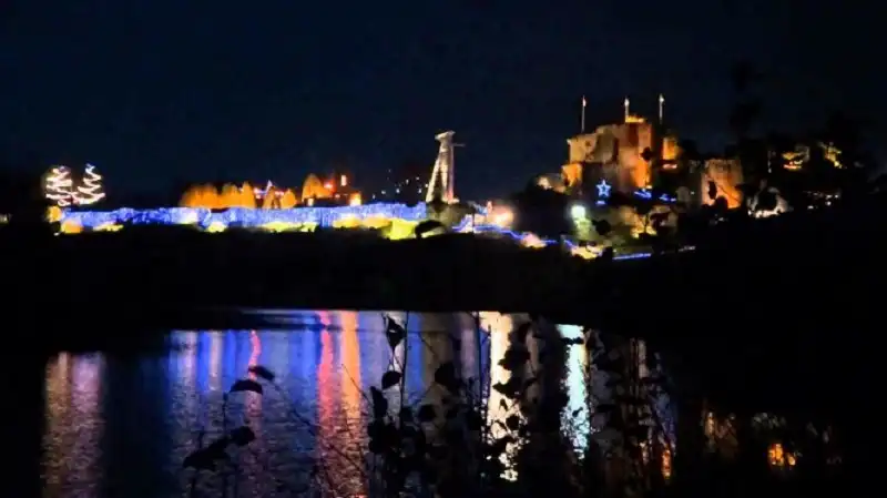 Khi đêm xuống, lâu đài bừng sáng với hàng ngàn ánh đèn, các tường thành được phủ lên một thảm ánh sáng tạo nên một hình ảnh kỳ ảo trong tiếng chuông ngân vào mỗi nửa giờ…
