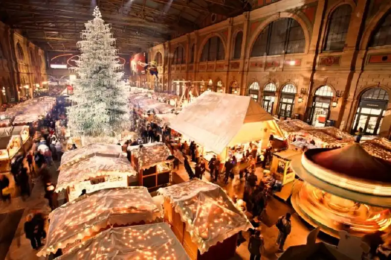 Với hơn 160 quầy hàng, chợ Giáng Sinh trong nhà ga trung tâm ở Zurich, Thụy Sĩ là một trong những chợ Giáng Sinh trong nhà lớn nhất châu Âu.