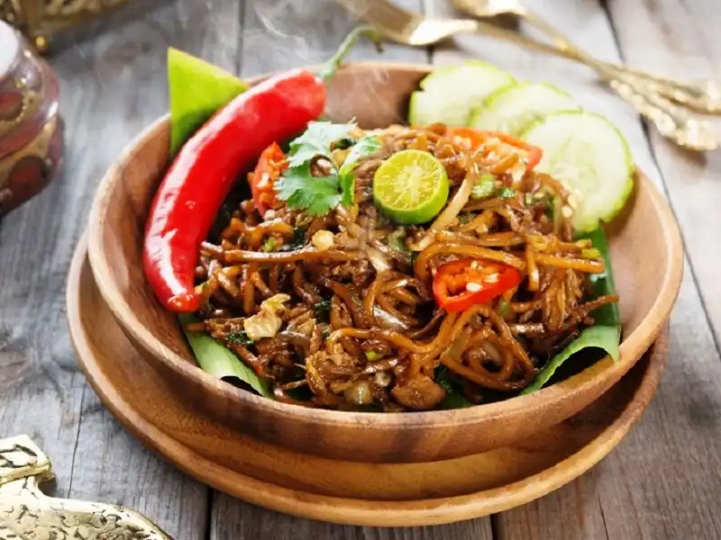 Món mì được làm từ mì trứng dai, xào với tỏi, hành, cải thảo, trứng, cà chua và thịt. Du khách có thể tìm những món mì goreng ngon nhất ở Warungs (các quán cà phê và nhà hàng bình dân ở Indonesia), hay quầy bán đồ ăn mamak ở Malaysia.