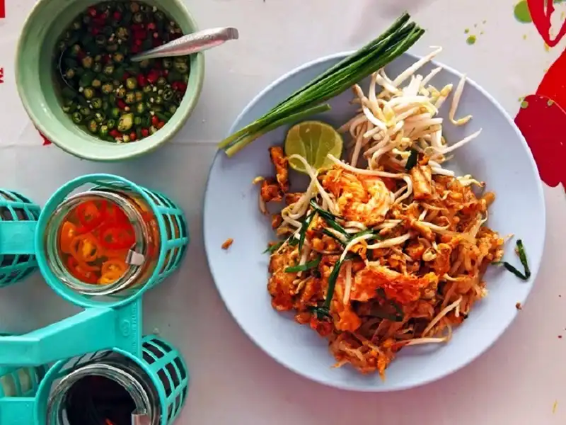 Pad Thái là một món ăn cực kỳ được yêu thích ở Thái Lan. Phở được xào với trứng, thịt, tôm và các gia vị để tạo nên một món ăn đầy hương vị và màu sắc. Ngoài ra, sự kết hợp của nước cốt chanh, nước me và bột ớt sẽ cho bạn một món ăn ngon tuyệt với đầy đủ các vị chua, cay, mặn, ngọt cực kỳ hấp dẫn.