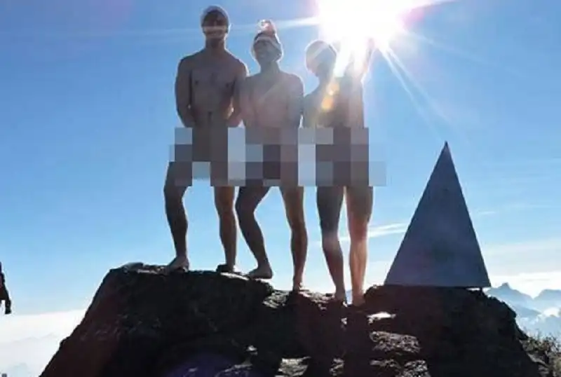 Hình ảnh ba ông tây khỏa thân chụp trên đỉnh Phan Xi Păng đang trở thành đề tài tranh cãi nảy lửa.