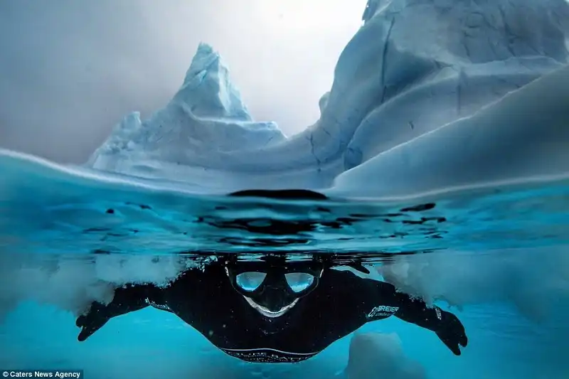 (#wanderlusttips) Alexandre Voyer đã tập luyện vất vả để có thể bơi trong làn nước lạnh cóng, ngắm những con hải cẩu và cá voi giữa khung cảnh băng tuyết ngoạn mục.