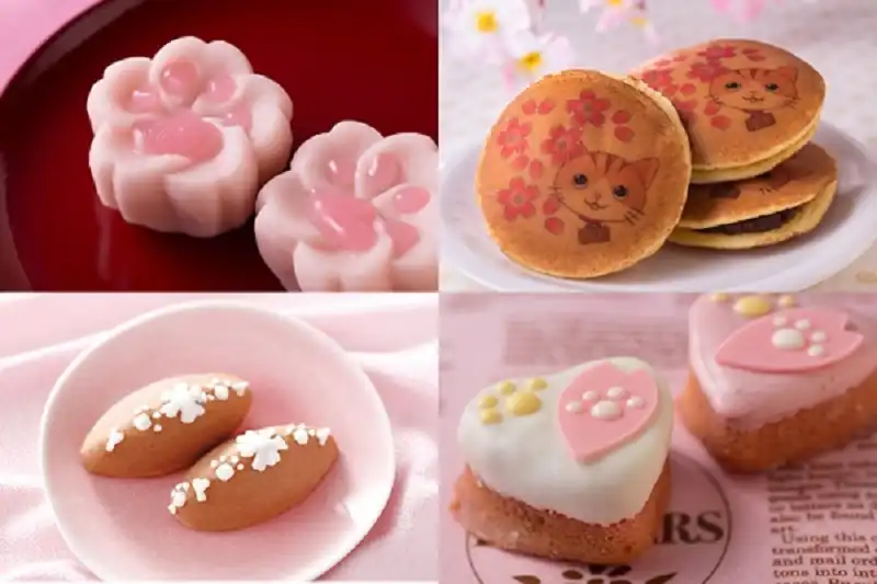 Cửa tiệm kẹo ngọt Senjushuku Kitaya đem đến những bông hoa anh đào mochi với dấu chân nhỏ xinh tinh nghịch của chú mèo Nyaran.Món bánh gato cuộn Sakura với hương thơm dịu nhẹ của cánh hoa hòa quyện cùng nhân đậu ngọt lịm, kem tươi beo béo trong lớp bánh xốp mềm mịn được rất nhiều kẻ hảo ngọt mong chờ.Chú mèo su kem với nhân kem hoa anh đào, kem trứng và đậu đỏ chính là biểu tượng mascot của nhà hàng FUJIYA Sweetoven trong bữa tiệc đồ ngọt này.Chú mèo nghịch ngợm một lần nữa để lại dấu vết xinh xắn trên những chiếc bánh giòn xốp phủ đường ngọt lịm mang tên Meringue.Rapoppo, tiệm bánh khoai lang nổi tiếng tại Tokyo, đem đến hội chợ ẩm thực món đặc sản của mình là món bánh khoai lang đầy đặn nhân dâu tây và kem hoa anh đào thơm ngon.Một trong những điểm nhấn của bữa tiệc xuân này chính là món giải khát nổi tiếng Anmitsu truyền thống. Khá giống với món chè của Việt Nam, bát chè khổng lồ này bao gồm kem hoa anh đào, các loại thạch và hoa quả , kèm theo một bé kẹo mèo đáng yêu nữa chứ!Bạn có còn nhớ món bánh rán khoái khẩu của Doraemon dorayaki không? Để đáp ứng nhu cầu của các thực khách, nhà hàng Michikusa Mochi đem đến hội chợ phiên bản mùa xuân của món bánh này.“Nữ hoàng” của bữa tiệc chính là món bánh tart hoa anh đào nở rộ đến từ tiệm bánh Boul’Mich Phía trên lớp bánh giòn tan là kem hoa anh đào, dâu tây tươi ngon và cả một “bức tranh” macaron của bé mèo Nyaran.