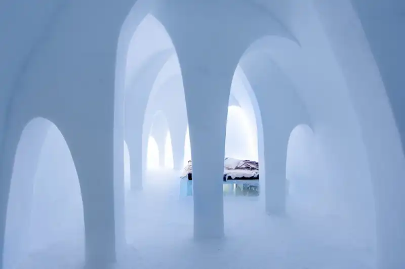 Chính thức khánh thành vào ngày 11/ 12, khách sạn này có tổng 19 “căn phòng nghệ thuật” được xây dựng thủ công, mỗi phòng với một chủ đề riêng biệt và được tạo nên bởi những nhà điêu khắc khác nhau. Có một quầy bar băng, một nhà thờ băng, một khu lớn với 5 quầy tạp hóa trong suốt như pha lê, và những bức điêu khắc bên ngoài khách sạn.