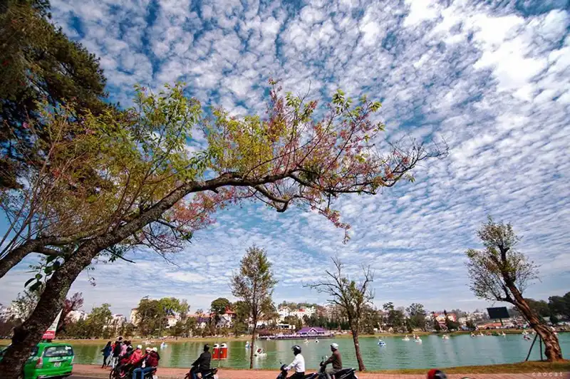 Trước Tết Nguyên đán, những cây mai anh đào trên cung đường dẫn ra hồ Tuyền Lâm đã chớm nở, nhưng có thể do mới trồng hoa không nở lâu, được chừng mười ngày cánh hoa đã phai nhạt và rụng dần.