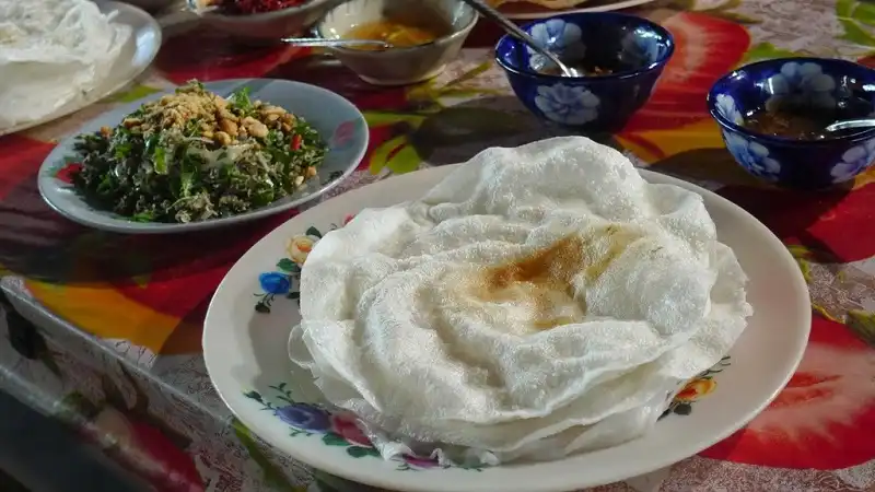 Bánh đập, cực kì đơn giản như cái tên của nó, là bánh tráng (bánh đa) nướng kèm với bánh ướt mới ra lò kẹp vào nhau. Lúc ăn, chỉ cần đập bộp một cái ngay giữa cái bánh, xé ra, chấm với mắm cái (mắm nêm) được pha theo công thức bí truyền của mỗi người bán… Thế đó, không cá, không thịt, không rau, chỉ là bột và… mắm!
