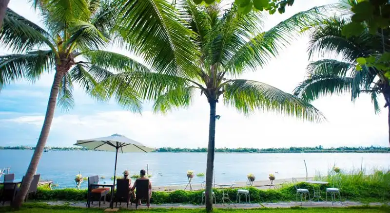 Nằm dọc theo sông Thu Bồn, Vinh Hung Riverside Resort nằm trên một đảo nhỏ giữa sông, duyên dáng với cảnh quan tuyệt đẹp.