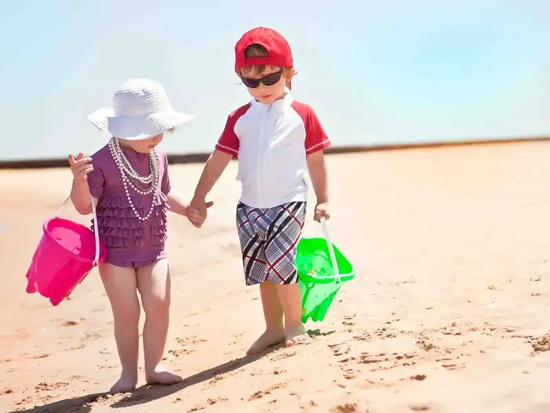 Nên mang theo bình xịt chống côn trùng, kem chống nắng, mũ, áo, ô để giúp bé chống chọi với thời tiết và côn trùng.