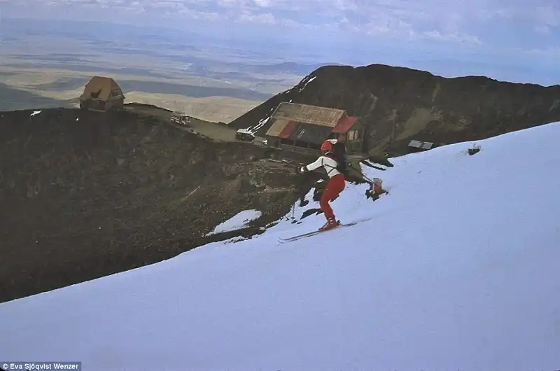 Băng hà trên đỉnh Pico Espejo, Venezuela: Với độ cao 4.875 m, băng hà trên đỉnh Pico Espejo thuộc núi Humboldt, dãy Andes, là nơi trượt tuyết độc đáo, phổ biến vào những năm 1950. Hiện tại, hoạt động này đã chấm dứt do nhiệt độ tăng khiến băng tan chảy. Đến năm 1980, du khách chỉ có thể trượt tuyết vào mùa đông. Ngày nay, tuyết hiếm khi rơi tới một ngày ở Pico Espejo, và việc trượt tuyết đã trở thành quá khứ. Trong ảnh, hai người leo núi đang chiêm ngưỡng khung cảnh.