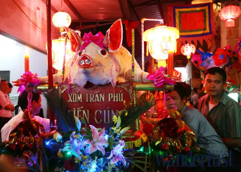 Theo truyền thống, hội rước lợn là dịp tưởng nhớ Tĩnh Quốc Tam Lang, vị anh hùng của làng La Phù dưới thời Hùng Vương, mở tiệc khao quân trước khi lên đường đánh giặc. Theo lệ làng, ngày 13 tháng giêng hàng năm, mỗi xóm sẽ mổ 1 con lợn dâng tế. Lợn để tế được lựa chọn và chăm sóc với tiêu chuẩn khắt khe. Quy trình mổ lợn được tiến hành tỉ mỉ. Công phu nhất là bóc lá mỡ. Người thợ phải làm khéo léo để giữ nguyên lá mỡ làm áo choàng phủ lên mình lợn tế. Khoảng 6 giờ tối, các xóm bắt đầu rước lợn tế lên đình. Nghi lễ tế thường diễn ra suốt đêm ngày 13 tháng giêng. Sau đó, lợn tế được các xóm mang về chờ sang ngày hôm sau tản lộc cho các gia đình trong xóm.