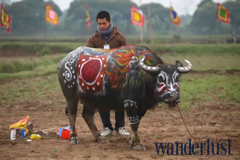 Đây là lễ hội chọi trâu cổ xưa nhất Việt Nam. Tương truyền, lễ hội này có từ thế kỷ 2 trước Công nguyên. Khi nhà Hán xâm lược nước Nam Việt, nhà Triệu tan rã, thừa tướng nước Nam Việt là Lữ Gia lui quân về vùng núi Hải Lựu, sông Lô, Vĩnh Phúc để tổ chức đánh giặc. Trâu sau khi chọi đều được giết để khao quân. Sau khi Lữ Gia mất, dân làng Hải Lựu thờ làm thành hoàng làng và lễ hội chọi trâu cũng bắt đầu có từ đó. Trong phần lễ, người dân trong xã dâng lễ lên Đền Hùng, cầu mong một năm làm ăn phát đạt. Ở phần hội, 25 ông Cầu, đại diện cho 19 thôn và các đoàn thể trong xã tham gia thi đấu. Kết thúc lễ hội, các ông Cầu sẽ bị đem… làm thịt để bán cho du khách.
