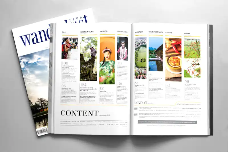 Ấn phẩm song ngữ Việt – Anh Wanderlust Tips, được thiết kế tinh tế, tiện lợi, phát hành 6 kỳ trong năm, vào ngày mùng 5 của các tháng chẵn với số lượng 30.000 bản/kỳ.
