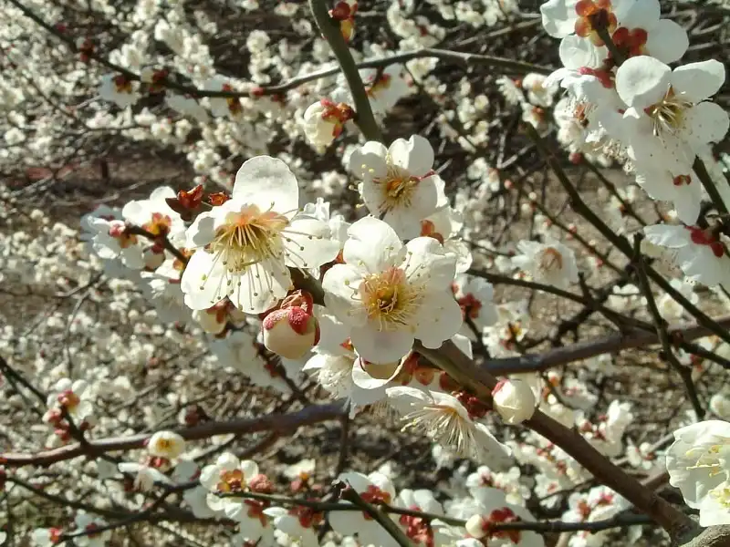 Mùa hoa xuân phương Bắc mở đầu bằng mùa hoa mơ phủ trắng khắp triền đồi các xã Chiềng Sơn, Mường Sang, thị trấn Mộc Châu… Cũng giống như hoa mận, hoa mơ khi đã nở là nở ồ ạt, từng chùm hoa hẹn nhau bung nở cùng lúc trắng muốt cả một rừng cây. Các cánh hoa khi bung ra trắng tinh khôi nhưng tròn đều chứ không thuôn dài như mận, đài hoa phơn phớt đỏ. Nếu nhìn từ xa, những quả đồi trắng muốt pha sắc xanh non là đồi mận, còn những quả đồi trắng nhưng hơi nhuốm màu đỏ mới chính là đồi hoa mơ. Đứng giữa rừng mơ ngày nắng xuân, hoa trắng như phủ một lớp tuyết mỏng trên những thân cây khẳng khiu, xù xì, ngỡ như ta đang lạc vào một thế giới thần tiên nào đó.